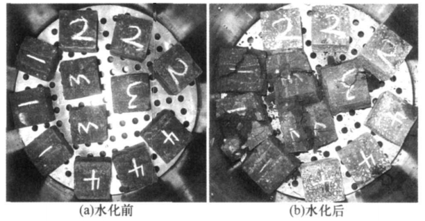 (4)浸鹽后試樣的抗水化性能得到明顯改善。