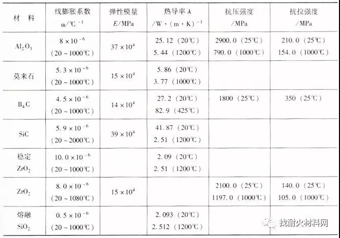 表1 幾種耐火材料的膨脹系數(shù)等性能