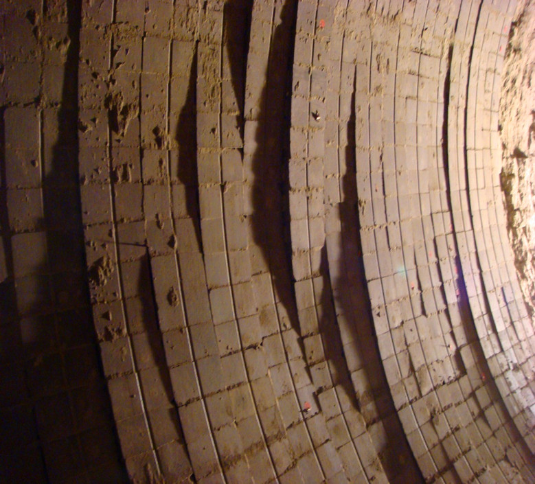 水泥回轉(zhuǎn)窯的傾斜度為2.5%至4%;剞D(zhuǎn)窯的傾斜度及窯內(nèi)的生料,會(huì)向窯口方向的耐火襯里產(chǎn)生巨大的機(jī)械應(yīng)力。不論是何種原因,當(dāng)這個(gè)應(yīng)力超過(guò)了耐火磚的抗磨和抗撞擊性所能承受的壓力時(shí),則有可能看到耐火磚的裂痕或剝落情況的出現(xiàn)。